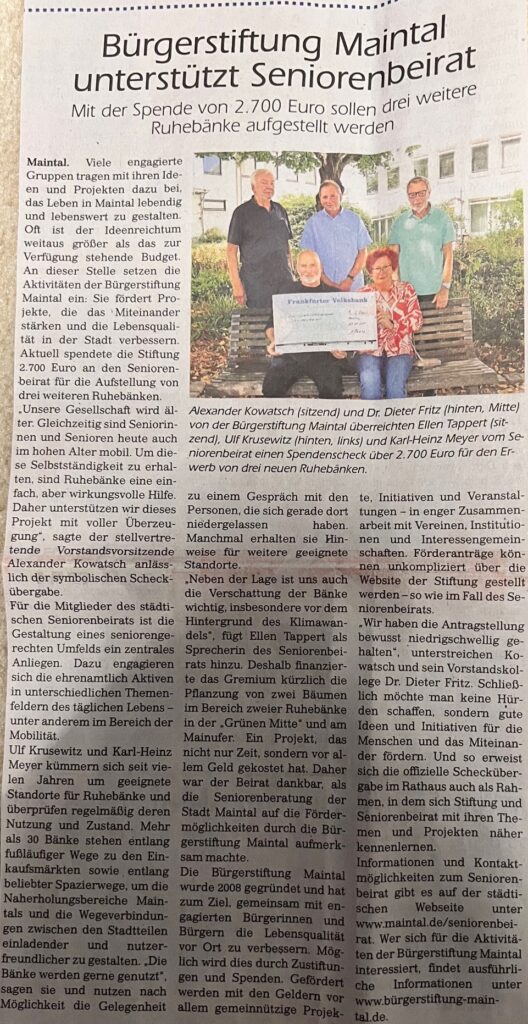 Bürgerstiftung Maintal unterstützt Seniorenbeirat